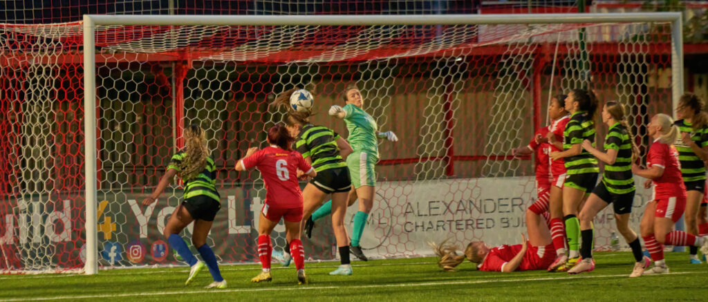 The game began with The Robins setting a solid defensive shape and pressing high when the opportunity presented itself. Both teams looked to establish control early on, with Carshalton’s back line staying composed under pressure and showing good organisation. Goalkeeper Zoe McNulty made a number of confident claims and sharp saves to keep the visitors at bay.