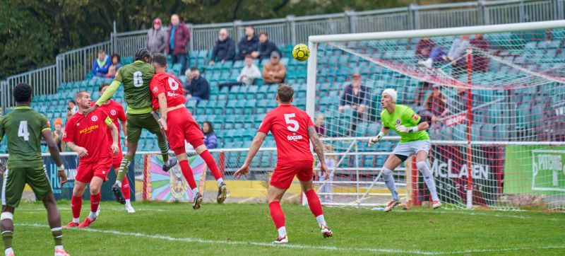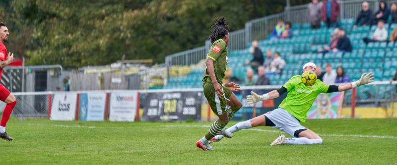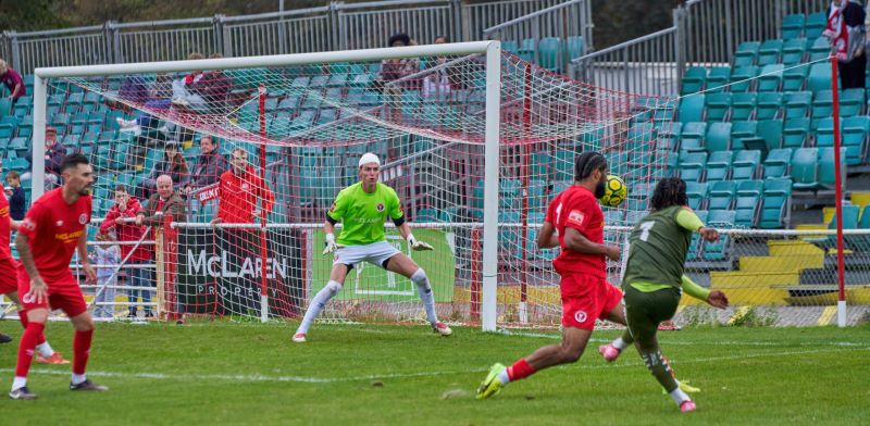 Carshalton came out strong in the second half and created the first clear-cut chance. Kola Salami was played through on goal, but Hurl rushed out to close the angle and made an excellent save.