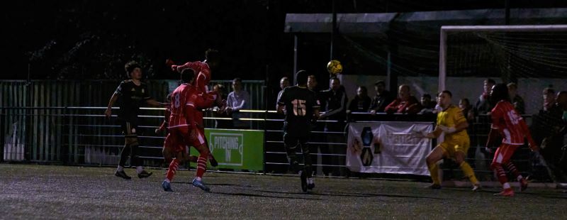 Just three minutes later, Whyteleafe went ahead for a third time. This time it was Jamie Mascoll who drilled the ball home after another attacking move. The game remained open, with Carshalton chasing another equaliser and Whyteleafe continuing to threaten on the break. Bradford had a header saved by Huk, and soon after, the Whyteleafe debutant made another important stop, tipping Ifeanyi’s strike past the post.