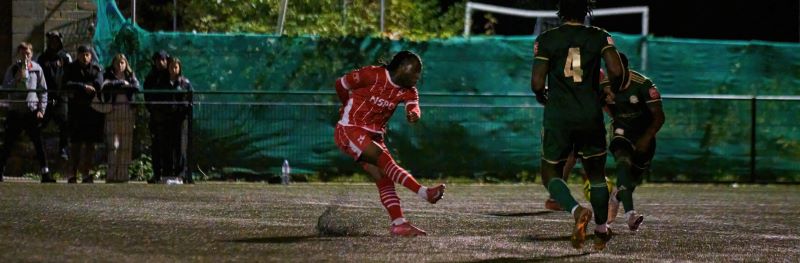 The Robins had the first clear chance of the match in the 9th minute. A long ball from Kerbey wasn’t dealt with by the Whyteleafe defence, allowing Kola Salami to break through on goal. However, the forward couldn’t find the target. Six minutes later, Salami had another opportunity. This time, Ricky Korboa broke down the left and delivered an early cross into the box. Salami took a touch past goalkeeper Slav Huk but couldn’t get the shot away cleanly,