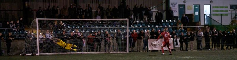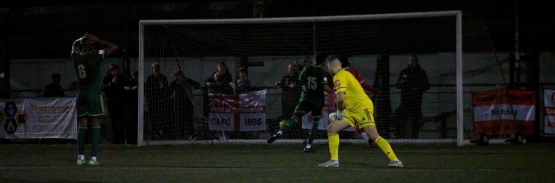 Sanchez Ming had to score to keep Carshalton in it. He went to Huk’s right, but the keeper made the save – players at the centre circle began shaking hands, thinking it was over. However, the assistant referee spotted Huk had come off his line early, and the penalty was ordered to be retaken. Ming stepped up again and this time made no mistake, making it 4–4.