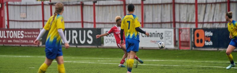Moments later, after tenacious work from Dulley to keep the attack alive, Kimble’s shot was deflected in by Badley for her second of the match. Sargent and Eade then both found the net with composed finishes before half time, with Eadeadding another shortly after following an excellent cross from Dulley. Badley completed her hat trick just before the break, giving Carshalton a commanding 9–1 lead at half time.